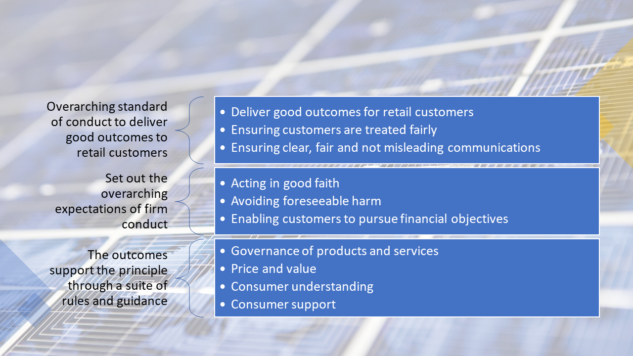 The expectation is for higher standards of conduct that result in tangible outcomes. There are four specific outcomes that must be evidenced in order to comply the Consumer Duty:
